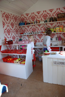 Kalvarna glömde vi alldeles bort eftersom de ville leka en stund i vår lekstuga också. (Bilden tagen vid annat tillfälle.)